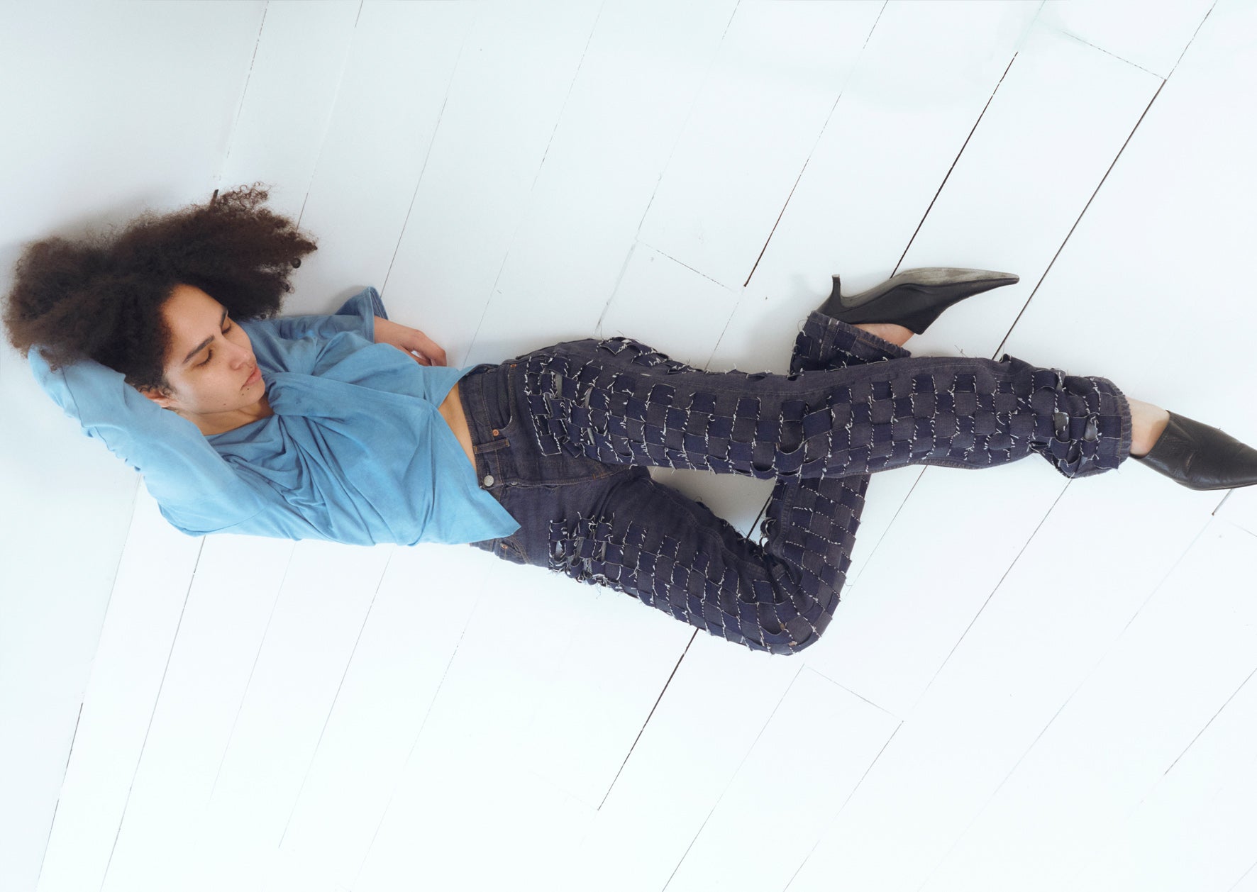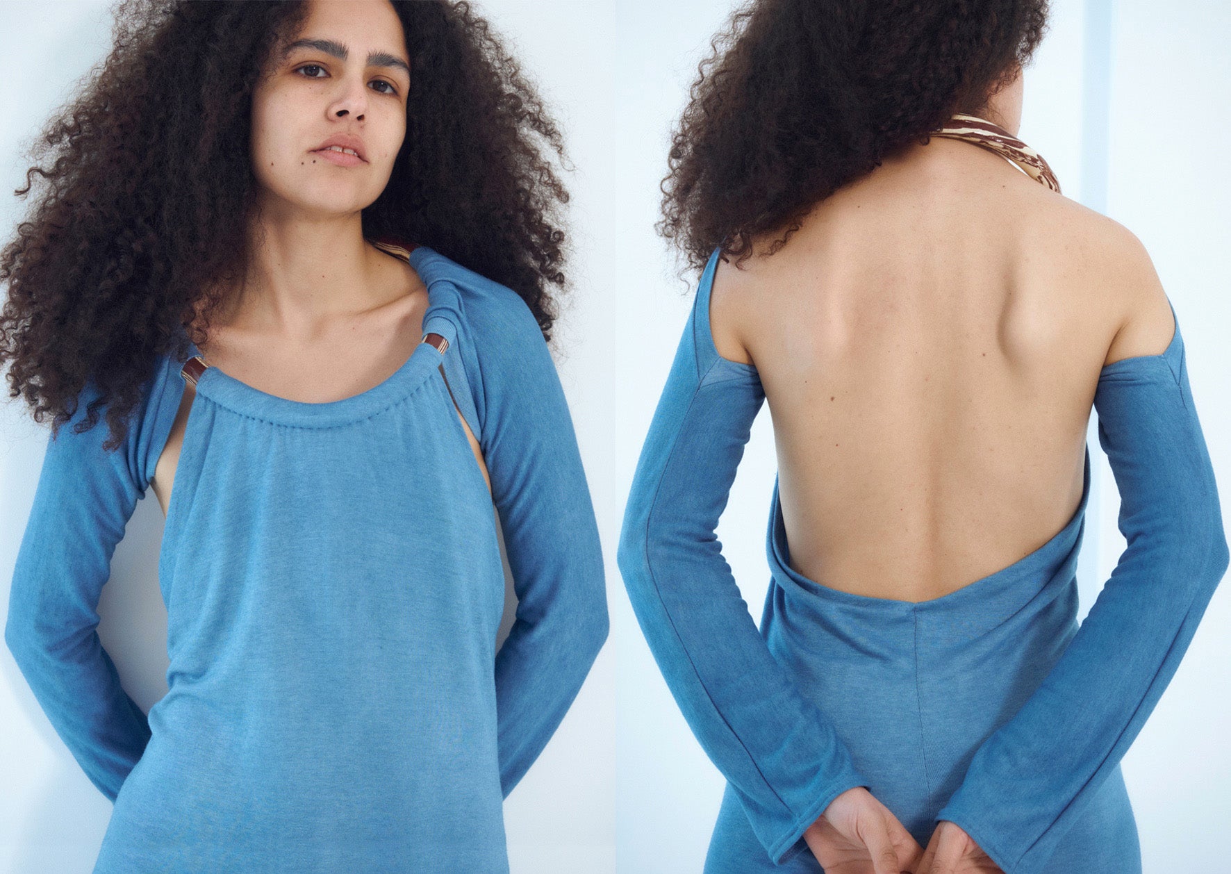 The Neck Ceramic Ring Dress, Long Sleeve in indigo