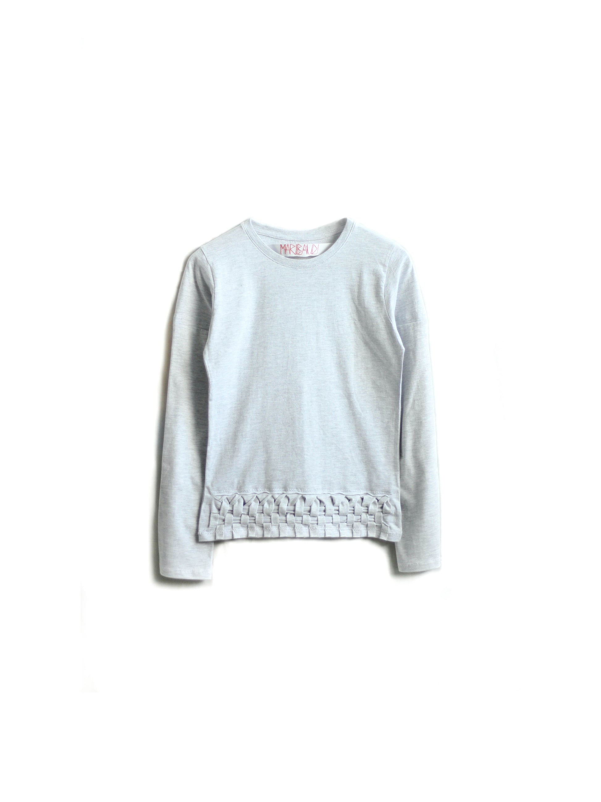 This t-shirt features a slim fit and is designed with an intricate weaving technique along the front and back, creating the illusion of interlaced garments.